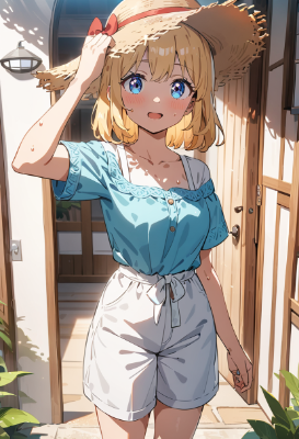 girl,blonde short hair,blue eyes,wearing red hair bow,(hair bow:1.4),red bow,smiling and facing forward,doodle style,sketchy lines,simple and playful drawing,casual pose,hand-drawn aesthetic,cheerful and lively expression,minimalistic background,light and whimsical colors,informal and fun atmosphere,rough and expressive strokes,close-up view,(masterpiece:1.2),(best quality:1.2),(very aesthetic:1.2),(absurdres:1.2),