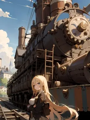 anime art, add layer, one girl with black long hair in the aqualium, gears,clocks , violet petals, violet flowers,cat ear,maid uniform