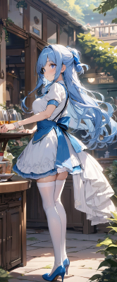 masterpiece, best quality, extremely detailed, anime, girl, skirt,bobcut,blue hair,blue eyes,sailor uniform,light blue color uniform,princess,white stockings,loafer, <lora:hime_style-1.0r8:1>,garden