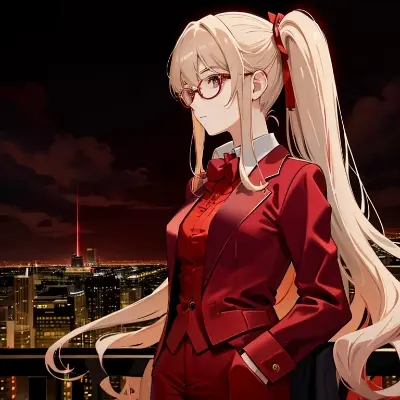 (extremely delicate and beautiful:1.2),1girl, bangs, red eyes, closed mouth, ((suitJacket)),hair between eyes, (medium hair), night, solo, upper body,smile,red lips,(natural skin texture:1.2),((White hair, twin tail)),(((satin,pants suit))),high heels,((Cyberpunk)),(((blueshirts))),city,rimmed glasses,(( hair perm)),(a flat-chested girl),good fingers,beautiful eyes ,((Motorcycle)),Moto Rider,riding,hand on hand grip