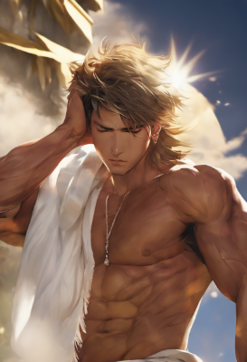 (best quality,8K, textile shading, upper body, photorealistic), (focus on face), (solo:1.2), (1dashing man), (Japanese famous actor), (45yo), (black eyes), (almond-shaped eyes, possibly with double eyelids), (rolled-up sleeves on a white shirt), (standing under the blazing summer sun), (drinking from a water bottle with one hand:1.2), (pulling on shirt collar with the other hand:1.2),(looking up at the bright sunlight, forehead creased with sweat), (forehead creased with sweat), (slightly unbuttoned shirt), (sweat beads glisten on face, neck), (intense heat and fatigue), (Sunlight shining brightly, beads of sweat on forehead and temples, slightly damp hair, and flushed cheeks), (shirt with sleeves rolled up, slightly unbuttoned at the top, sticking slightly to skin), (sun rays creating a warm, golden glow around him), (Background of a hot, heatwaves in the distance),