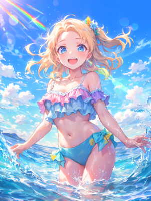 水着の上に着たTシャツが濡れて透けている女の子を作ってみました。