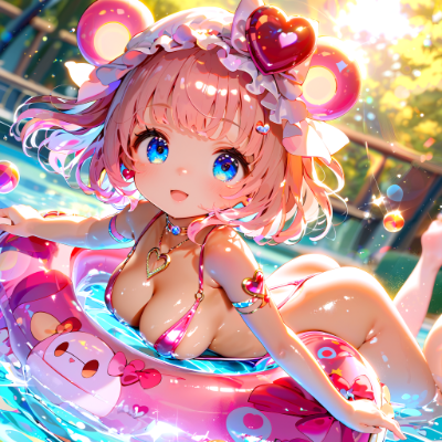 1girl ,(cute oppai loli gyaru with micro bikini, slingshot swimsuit enchanting through a 3d pool paradise water spiral, glossy dark skinned female),well-fleshed oiled shiny skin, unique Accessories, large earrings