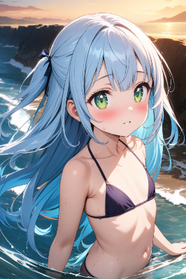 masterpiece, best quality, extremely detailed, (illustration, official art:1.1), 1 girl ,(((( light blue long hair)))), ,(((( light blue long hair)))),light blue hair, , long hair ((blush)) , cute face, big eyes, masterpiece, best quality,(((((a very delicate and beautiful girl))))),Amazing,beautiful detailed eyes,blunt bangs((((little delicate girl)))),tareme(true beautiful:1.2), sense of depth,dynamic angle,,,, affectionate smile, (true beautiful:1.2),,(tiny 1girl model:1.2),)(flat chest) ,(masterpiece, best quality), 1girl, Carnation High Fade with Quiff, small breasts, Copper V-neck top and Button-front denim skirt, thigh strap, Standing with one hand touching the chin, looking thoughtful ,(((Short sleeve shirts, short shirts))),In town