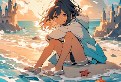 A young girl in stylish, non-metallic armor wielding an oversized greatsword faces off against a colossal monster about three times her size. The monster resembles a dragon with scaly, green and yellow armor-like skin, sharp horns, and piercing eyes. They stand in a barren wasteland near a small body of water, under a clear blue sky with fluffy cumulus clouds. Harsh sunlight casts dramatic shadows, creating a high-contrast scene filled with tension. The color palette includes warm earth tones for the landscape, vibrant blue for the sky, and bold greens and yellows for the dragon-like monster. Dust particles create a slight haze in the air. The composition is dynamic, with the determined girl in the foreground and the intimidating monster looming nearby, its size imposing but not overwhelmingly massive. Detailed textures on the character's armor, monster's hide, and terrain. Cinematic 16:9 aspect ratio, high-resolution digital painting style with depth of field focusing on the girl and monster.