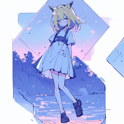1girl, [ mika \(blue archive\)::1], [blue archive:arknights:1], partial upper body,preteen female,solo,fox ears,medium hair, blonde hair,pleated skirt, shirt,summer dress,[(aged down:0.9)::1],[(action ,wind :0.9)::1],[Well-proportioned figure:1], masterpiece, best quality,BREAK,photographic background, outdoors,dusk,gradient sky,BREAK,[(distinct outline,isolated subject:1.1):0.8],[(traditional media:0.6)::1],