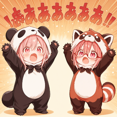 前半3枚はハムスター、フェレット、ハリネズミまみれの女の子ですね(^^;) なんか簡単に”まみれ”の絵は作れちゃいますね。複数種の動物を指定すると微妙な動物になっちゃいますが^^; 後半3枚は久々のネタ絵です。”衝動”+”ぶつ”ってことで(^^; でもちょっと微妙なポーズかなぁ…