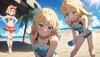 1girl,solo,short hair,blonde hair,blue eyes,(hair bow:1.4),red bow,red ribbon,hair ribbon,summer,train interior,sitting,sleeping,closed eyes,school uniform,white shirt,pleated skirt,socks,shoes,bag,window,sunlight,warm colors,air conditioning,other passengers,blur,depth of field,soft lighting,anime style,moe,cute,peaceful,relaxed atmosphere,sweat,heat haze,train sounds,motion lines,gentle shading,pastel colors,detailed background,reflections,shadows,light rays,atmospheric perspective,character focus,side view,slouching posture,head tilt,parted lips,gentle expression,bangs,ahoge,hand on lap,legs crossed,feet dangling,seat texture,armrest,headrest,luggage rack,advertisements,train handles,floor pattern,ceiling lights,air vents,subtle motion blur,dreamy atmosphere,nostalgic feel,slice of life,