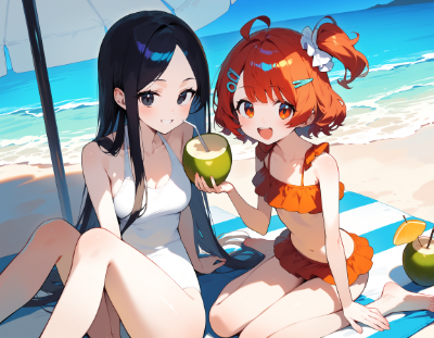 dynamic pose,dynamic angle,cowboy shot,Summer sea,blue sky,white clouds,shining sun,lens flares,crystal clear,clear blue sea,White sandy beaches,Beach, BREAK