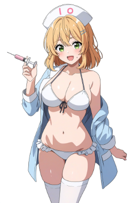 1girl, no-sleeve, white bikini, nurse cap, white thighhighs, navel, bare shoulder, anime coloring, best quality, amazing quality, very aesthetic, absurdres