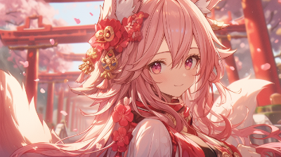 夕暮れ時の美しい夏の空の下、狐耳の少女が佇んでいる。ハート形のサングラスとカラフルなアクセサリーが、彼女の無邪気で魅力的な雰囲気を引き立てている。涼しげな風が彼女の髪を揺らし、遠くに見える海と空が彼女の背景として広がっている。この瞬間、彼女はまるで夏の魔法の一部のように輝いている。