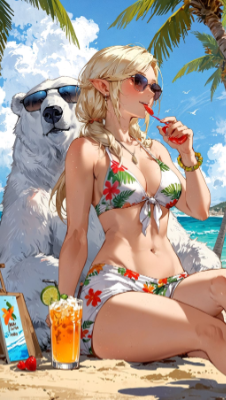 ペンギンA 「シロクマさんがSNS更新している!」 ペンギンB 「ビキニガールと2ショットだ うらやましい~」 ペンギンC 「でも敷かれているよね」 ペンギンA・B 「明らかに」「敷かれてるね」「それでも」「うらやましいね」 一応この投稿の続きです https://www.aipictors.com/works/416359/