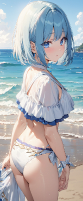 masterpiece, best quality, extremely detailed, anime, girl, skirt,bobcut,blue hair,blue eyes,sailor uniform,light blue color uniform,princess,white stockings,loafer, <lora:hime_style-1.0r8:1>,small animals,evening sun,mountain