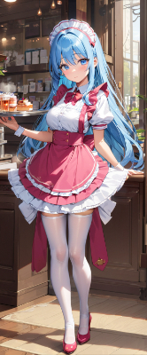 masterpiece, best quality, extremely detailed, anime, girl, skirt,blue hair,blue eyes,maid,waitress,cherry pink color uniform,princess,white stockings,pumps,longhair <lora:hime_style-1.0r8:1> <lora:noline:1> <lora:hairdetailer:1> <lora:sanDka1:0.9> <lora:hime_style-1.0r8:1>