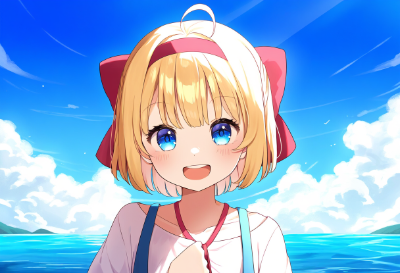1girl,solo,blonde hair,short hair,(hair bow:1.3),red bow,(large earrings:1.3),blue eyes,determined expression,wishing for success,anime style,detailed eyes,(sparkling eyes:1.2),eyebrows visible through hair,furrowed brow,slight smile,clenched fist,(confident pose:1.3),standing,three-quarter view,looking to the side,school uniform,pleated skirt,white blouse,red necktie,(shrine background:1.1),torii gate,cherry blossoms,(sakura petals in wind:1.2),sunlight filtering through trees,lens flare,(dynamic lighting:1.1),soft shadows,depth of field,detailed fabric folds,(wind effect on clothes:1.2),hair blowing in wind,(masterpiece:1.3),(best quality:1.3),(very aesthetic:1.2),(absurdres:1.4),