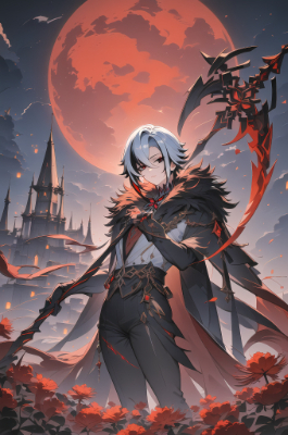 {{{{amazing quality}}}},{{{{{very aesthetic}}}},year 2023,{{{{{{Arlecchino (Genshin Impact)}}}}},ai-generated,Cute,animation,genshin impact,fate/grand order,sensitive pose,{{{holding Scythe}}},closed mouth,serious,expressionless,Red lightning,Red thunderstorm,fighting stance,(Red Flower Backgrounds),hades Medieval Castle,night,red moon,{{{{Focus View}}}},beautiful detailed eyes,cute pose,cool,nsfw,{realistic},{{Beautiful Backgrounds}},{{{beautiful}}},{{{{8K}}}},{photorealistic},, best quality, amazing quality, very aesthetic, absurdres
