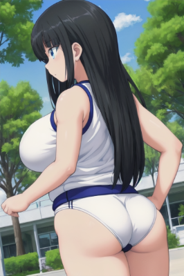 masterpiece, best quality, extremely detailed, anime, cool style, elderly lady, huge breasts, thicc body, fair skin, black chignon hair, black eyes, buruma, gym uniform, happy, park, <lora:sensualface_type2:1> <lora:eyecolle_aster_v100:1>,