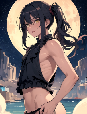 masterpiece, best quality, extremely detailed, anime, girl, skirt, weapon, a pretty woman, ponytail, ahoge, garter belt, maid uniform, red hair, green eyes, dancer, maid, fantasy, colorful, steampunk, different world, summer, night view, panty shot, blushing, sweating, shooting, cool,