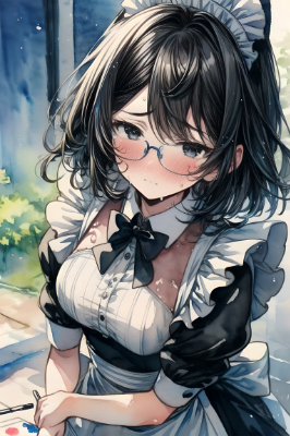 ( brilliant blue theme), (roughly drawn dreamy watercolor:1.5), masterpiece, best quality, extremely detailed, anime, , wet hair, T shirt, black hair, bobcut, black eyes, wearing glasses, ((rain)), ((rainy day)), blushing, embarrassment,sitting down on the bench placed on the Bus stop, clothes are see-through, one girl, <lora:flat2:-1> <lora:saturation:-0.4> ,
