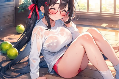 (watercolor, tegaki:1.2),(pastel color:1.2),a girl in the water, 1girl, (school uniform, pink cardigan, red tie, classic style with white shirt and checked long skirt), sleeves past wrists, (black long hair), brown eyes are shining and cute, (Pastel Color: 1.3), (red-rimless eyewear:1.2), light blue panties, embarrassing, separated-lips, soaking feet, sitting, water, long sleeves, barefoot, hot spring,house_cat, sunshine,