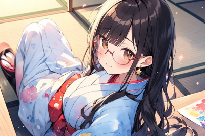 (watercolor,tegaki:1.2),(pastel color:1.2),a girl in dress walking down path on empty trail with grass next to wooden boards, brown eyes are shining and cute, black hair,long hair,(red-rimless eyewear:1.2),star earrings,fabrous feminie softy breast,embarrassing,outdoors, smile, breasts, 1girl, cleavage, white dress, open mouth, looking at viewer, open clothes, collarbone, pink cardigan,sleeves past wrists,