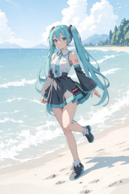 ((masterpiece)), ((high resolution)), ((best quality)), (ultra-detailed), anime, ((extremely detailed)), 4K, (8K), best quality, dynamic angle, (beautiful), solo, (hatsune miku), school classroom, smile, school uniform,