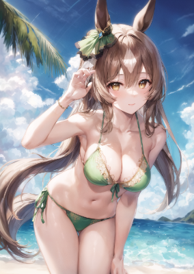small breasts,(light pink bikini with frill:1.3),middle breasts,north_flight \(umamusume\) ,<lora:north_flight_v1.2:0.6>