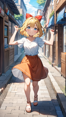 1girl,solo,blonde hair,short cut,blue eyes,(hair bow:1.4),red bow,cliff,praying,peace,distant view,side view,anime style,young,short hair,gentle expression,white dress,flowing fabric,bare feet,arms raised,palms together,eyes closed,serene,starry sky,full moon,ocean view,night scene,glowing aura,soft lighting,wisps of clouds,rocky terrain,grass patches,wind-blown hair,(peaceful atmosphere:1.2),detailed background,intricate scenery,(emotional:1.1),depth of field,(ethereal:1.3),mystical,(symbolic:1.1),hope,tranquility,masterpiece,(best quality:1.2),(very aesthetic:1.1),absurdres,