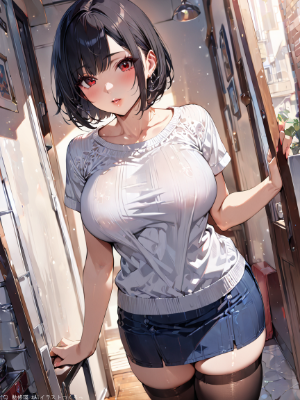 (best quality),(masterpiece),(ultra detailed),Masterpiece, best quality, ultra detailed, high resolution, super fine illustration, 1girl, solo,red eyes, black hair, long hair, large breasts,nun, veil, skirt, thighhighs,wish for peace,own hands clasped,