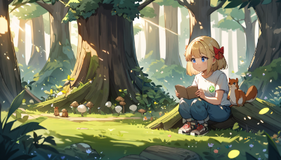 1girl,solo,blonde hair,blue eyes,short hair,(hair bow:1.4),red bow,red ribbon,ice skating,frozen pool,winter,cold,smiling,happy,twirling,arms outstretched,white breath,rosy cheeks,mittens,scarf,earmuffs,figure skates,coat,skirt,tights,snowflakes,icicles,frost,mist,clear sky,stars,moon,night,trees,bushes,benches,pool ladder,diving board,pool tiles,pool lights underwater,reflections on ice,cracks in ice,snow piles,footprints,shadows,lens flare,sparkles,motion lines,detailed eyes,eyelashes,eyebrows,small breasts,petite,cute,adorable,chibi,anime style,cel shading,vibrant colors,high contrast,clean lines,soft shading,depth of field,rule of thirds,dynamic pose,foreshortening,3/4 view,looking at viewer,full body shot,from above,