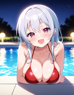 (junior idol, playing in pool:1.2), glass roof, active, water splash, dynamic, summer, blue sky, micro bikini tops, (erotic mood, cute tone:0.7), (erogaki smile, dosuebe body, sexual temoptation:0.9), love, happy,