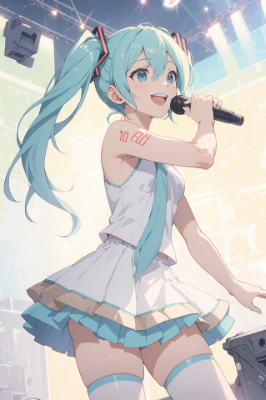 ((masterpiece)), ((high resolution)), ((best quality)), (ultra-detailed), anime, ((extremely detailed)), 4K, (8K), best quality, dynamic angle, (beautiful), solo, (hatsune miku), Wedding dress, outdoors, falling cherry-blossoms, smile,