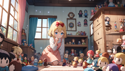 2 girls,loli,blond hair,short hair,(hair bow:1.2),red bow,blue eyes,cat ears,smile,indoors,walking,masterpiece,(best quality:1.4),(very aesthetic:1.3),(absurdres:1.2),