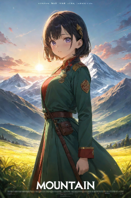 mountain, (sunrise:1.2), background to sunrise,drinking ice coffee, selfie, wear sunglasses,
