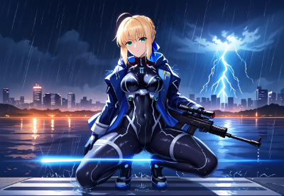 (masterpiece, high quality, best quality, very aesthetic, absurdres), girl, sinon, aqua hair,short hair, shiny skin, skinny legs, one-peace shirt, outdoors, river, mountain stream, summer, sky, water melon,leaning forward, solo focus,Mountain <lora:faceage:0.8> <lora:make25d_type3_v100:0.6>,evening sun