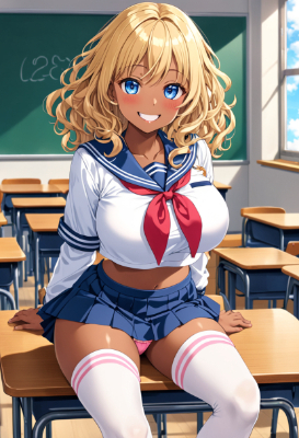 masterpiece, best quality, extremely detailed, anime, 1girl, djeeta (granblue fantasy), solo, blonde hair, gigantic breast, cleavege, thighhighs, boots, full body, thigh boots, short hair, brown eyes, hairband, looking at viewer, smile, golden bikini, thick thigh, thigh high armored boots, long spear, large shield, holding sword, closed leg,