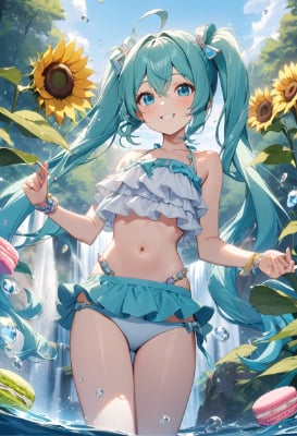 mini ,twintail,longhair,ahoge,blue hair,green hair,blue eyes,fantasy,colorful,clear sky,blue sky,Lollipop,PastelCalla,macaron,vacation,mini ,bikini swimwear