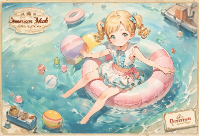 masterpiece, best quality, extremely detailed, Retro pop, watercolor, pastel pink, girl singing with eyes closed, brown hair (long hair, curly hair), front view, sleeveless blouse, cute, striped pattern, polka dot wallpaper