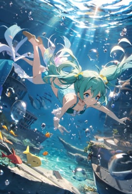 ,bow,swimming,bikini swimwear,sea,underwater,sunken ship,clear ,summer,magic,ocean floor,Tropical Fish,Dolphin