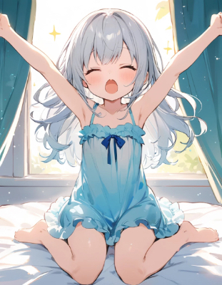 masterpiece, best quality, extremely detailed, illustration, 8k cg wallpaper, stunning art, absurdres, very detailed, fine focus, (from side), a cute girl, 10yo, silver long hair, T-shirt, denim short pants, socks, sneakers, standing on the observation deck, accessed handrail, smile, (blush), open mouth, mountain, (magnificent panorama view:1.1), cinematic angle,