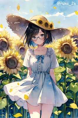 (roughly drawn dreamy watercolor:1.2), masterpiece, best quality, extremely detailed, portrait, dynamic angle, anime, ((cute maid)), medium breasts, sweating, embarrassed, sensual, bobcat, black hair, black eyes, wearing glasses, <lora:flat1:-1> <lora:sensualface_type2:1>
