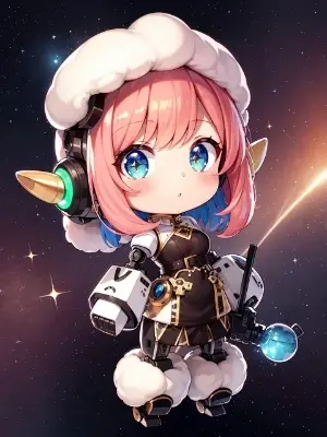 a white fluffy dog and a green eyes woman with pink hair, <lora:flat:0.5>