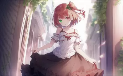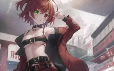 (detailed CG:1.3), , green_eyes, red_eyes, ((heterochromia)), tsurime, ((((small_breasts)))), short_hair, ((((red_hair)))), ((((one_side_up))), flipped hair, ahoge, animal_ear_fluff, animal_ears, bangs, blush, cat_ears, collarbone, hair_between_eyes, hairclip, hood, (((hoodie))), looking_at_viewer, solo, dynamic pose, intricate cute clothes, beautiful landscape
