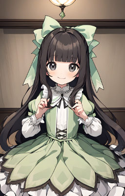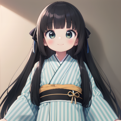 1 girl,(((very longest hair))),smile, Black hair,flowing hair,straight Hair,hair ribbon,mintgreen stripe,Black Eyes,flat chest,straight Across bangs,princess Cut, Very Long Sideburn,roundry Head,Droping eyes,cute,Meekness,Bob Cut,long back hair,12 years old,nature,night,mummy girl,halloween,jack o lantern