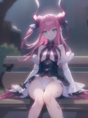 cinematic photo <lora:ram_rem_pony:1>, rem_\(re:zero\), ram_\(re:zero\), 2girls, 14 years old, maid apron, garden, twilight, dynamic angle, fog, light smile, score_9, score_8_up, score_7_up, [pony diffusion V6 is trained by PurpleSmartAI:100], yuri, sitting on bench, miniskirt, white kneehighs, couple, rating_explicit, pantyshot, dynamic pose, close-up, . 35mm photograph, film, bokeh, professional, 4k, highly detailed
