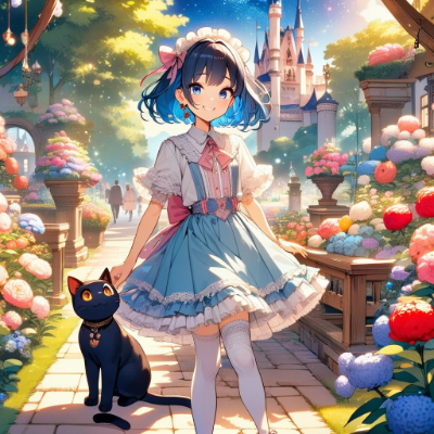 masterpiece, best quality, extremely detailed, anime, girl, skirt,blue hair,blue eyes,princess,orange color lolita,white stockings,pumps,earrings,Makeup,fantasy,colorful, ,smile,wink,black cat,starry sky,halloween,forest <lora:hime_style-1.0r8:1> <lora:noline:1> <lora:sanDka2:1> <lora:hairdetailer:1>,longhair