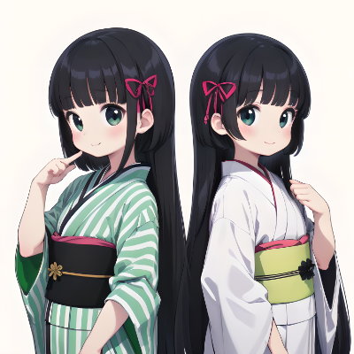1 girl,(((very longest hair))),black hair, smile,straight Hair,hair ribbon,mintgreen stripe,Black Eyes,flat chest,straight Across bangs,princess Cut, Very Long Sideburn,roundry Head,Droping eyes,cute,Meekness,Bob Cut,long back hair,12 years Old, White kimono,watermelon split,Kendo