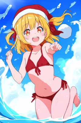 A cute girl, two side up, blonde hair, short hair, orange bobbles, elf ears, orange eyes, conpetitive school swimsuit, flat chest, barefoot, underwater, anime drawings, anime coloring, best quality, amazing quality, very aesthetic, absurdres