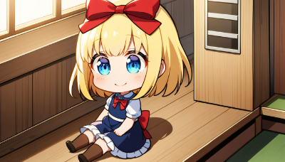 このページは現在開発中です。リニューアル版はすべて開発中のため不具合が起きる可能性があります!一部機能を新しくリリースし直しています!基本的には旧版をそのままご利用ください!旧バージョンへ不具合報告1 / 8Previous slideNext slideいいね20推薦ちょこーん2024年08月26日 03時00分使用モデル名:CustomModel(その他)対象年齢:全年齢スタイル:イラスト参加お題:うちの子#うちの子#女の子#金髪#金髪碧眼#赤リボン#ちびキャラ#微笑みちょこーんと佇んでいるムスメさんですPromptsNegativePromptsParameterOther1 girl,loli,(chibi:1.2),blond hair,short hair,(hair bow:1.4),red bow,blue eyes,smile,sitting,indoors,Copy生成情報いっぱいでふサポートする