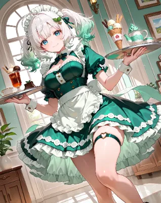 (best quality),(masterpiece),(ultra detailed),Masterpiece, best quality, ultra detailed, high resolution, super fine illustration, 1girl, dark blue hair, long hair, twintails,fox ears, green eyes, petite, small breasts, Japanese clothes, kimono, skirt, thighhighs, holding orb, clothed,